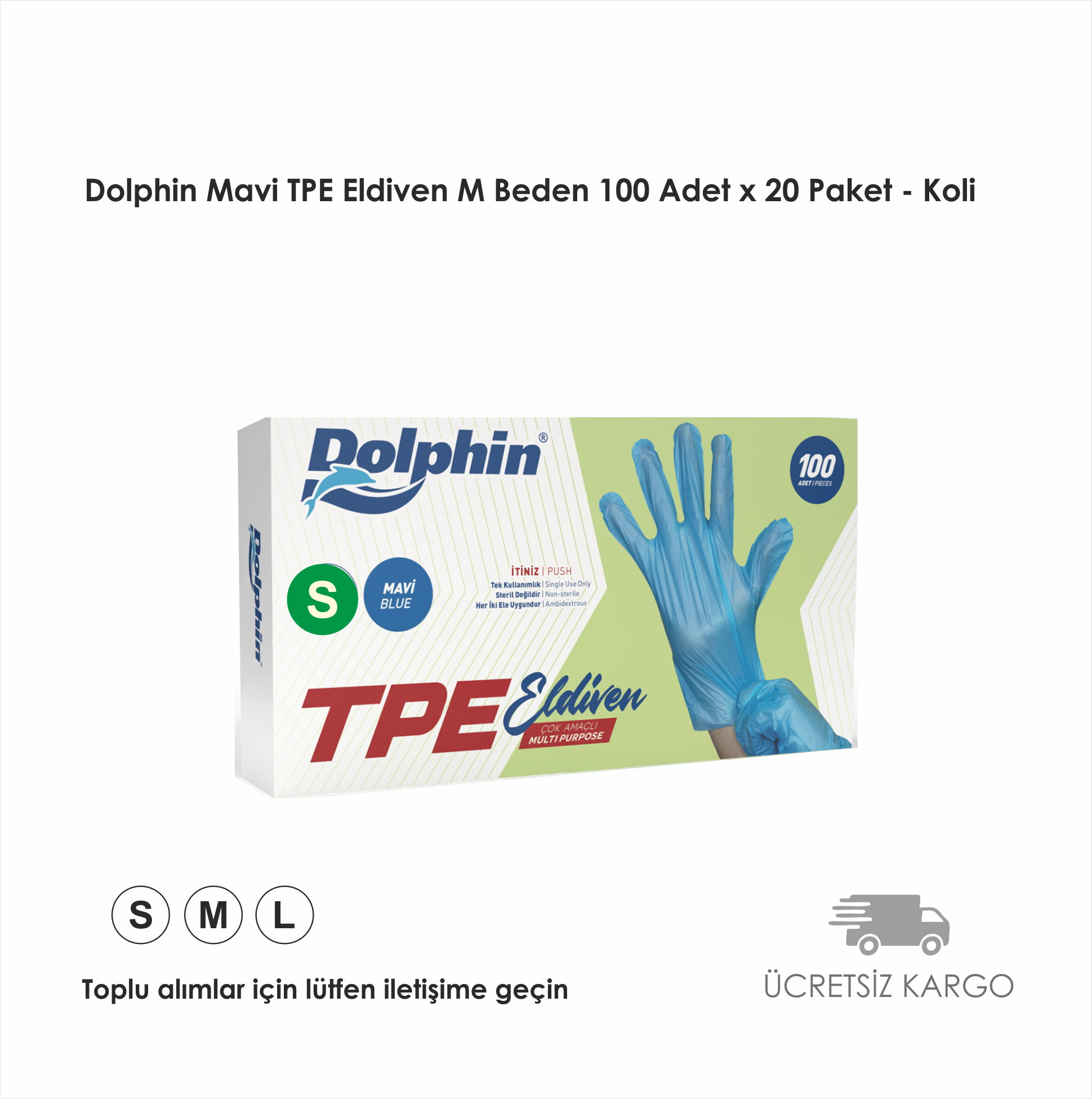 Dolphin Mavi TPE Eldiven S Beden 100 Adet x 20 Paket