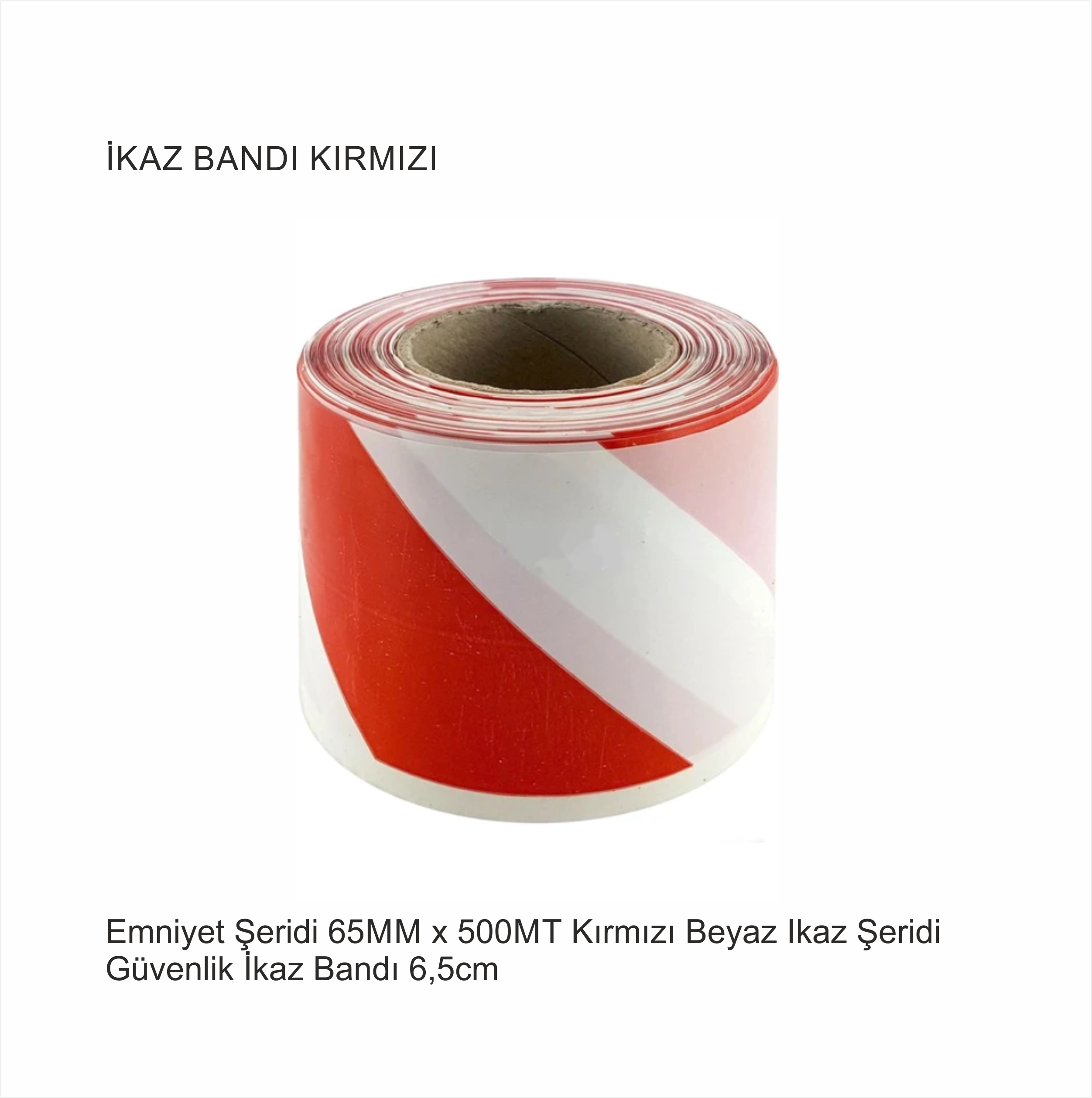 Kırmızı Beyaz Renkli İkaz şeridi. 6.5cm genişliğinde, 500metre uzunluğunda. Özel hammaddeden üretilen sarı siyah renkte, boyası çıkmayan emniyet ikaz bandıdır. Özel alanların belirlenmesi, şerit çekilmesi, sınır konulması, engellerin ve tehlikeli alanların işaretlenmesi vb. amaçlarla kullanılabilir.